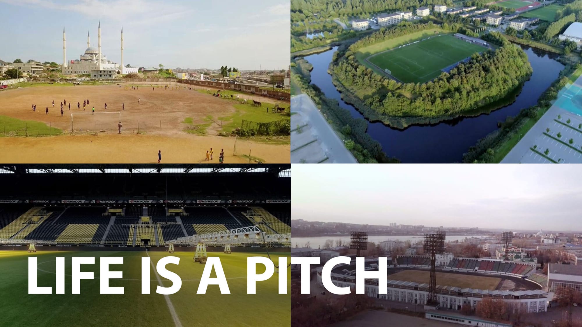 Football is one of the most popular sports in the world. "Life Is A Pitch" finds the most interesting football pitches around the world, from stadiums to makeshift plots of land in the middle of an urban sprawl. And all that from a bird's eye view.
